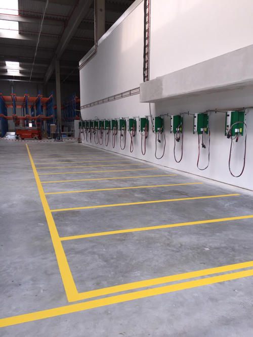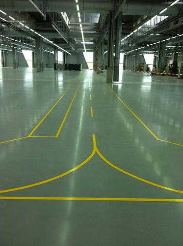 Unsere Markierung wird maschinell mittels Rollscheibenmarkeur professionell aufgetragen und garantiert somit eine optimale Ausführung der Arbeiten: ohne jeglichen Sprühnebel, Kleckse etc. also absolut gradlinige und scharfkantige Markierungslinien. Bei der Ausführung der Werks- und Hallenmarkierung verwenden wir ein hochwertiges, abriebfestes und UV - beständiges 2-Komponenten-Epoxi-Farbmaterial der Marke Limboroute K 809 glatt (Spezielle Hallenfarbe/ Hersteller Swarco Limburger Lackfabrik GmbH) in RAL 9016 Weiß oder in einer anderen vom Kunden vorgegebenen Farbe gemäß RAL Karte. -