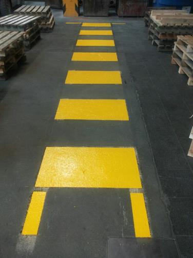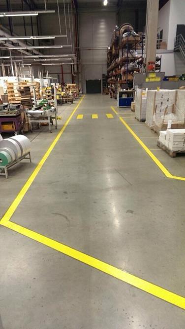 Bei der Werks- und Hallenmarkierung berücksichtigen wir zu erwartende Belastung und Nutzung der markierten Flächen durch Gabelstaplerverkehr und gehen in der Regel wie folgt vor: